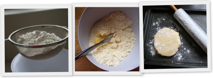 You will only need a few simple ingredients for the pastry. If you do a bit of research you will see that shortcrust pastry recipes can vary quite a bit – most should have twice as much flour as butter, some use eggs or milk instead of water (this makes a richer pastry), and others include sugar for a sweet shortcrust pastry. I have kept this recipe simple and it can be used for both sweet and savoury dishes.