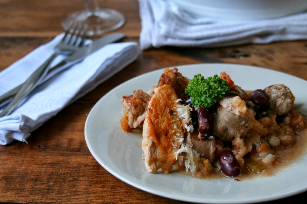 This was my first attempt at cassoulet (and I am still far from being an expert!), which is essentially a hearty French casserole made with meat and beans. I tackled it in much the same way as I create many of my recipes – starting with a list of ingredients and a plan for how I was going to prepare the dish, and then just diving into the cooking, making adjustments and notes as I went along. Initially I was concerned that my ingredients were not traditional enough, but upon further research I found that there are actually countless versions of this classic dish out there, and this is mine.