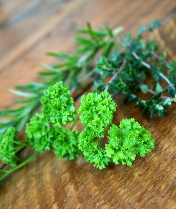 4.) Blanche the tomatoes and chop into chunks. Place in the saucepan along with the onion mixture, chicken and sausages. Add the chicken stock, bay leaves, parsley, rosemary and thyme. Season with salt and pepper. Stir, then allow to simmer for 40 minutes.