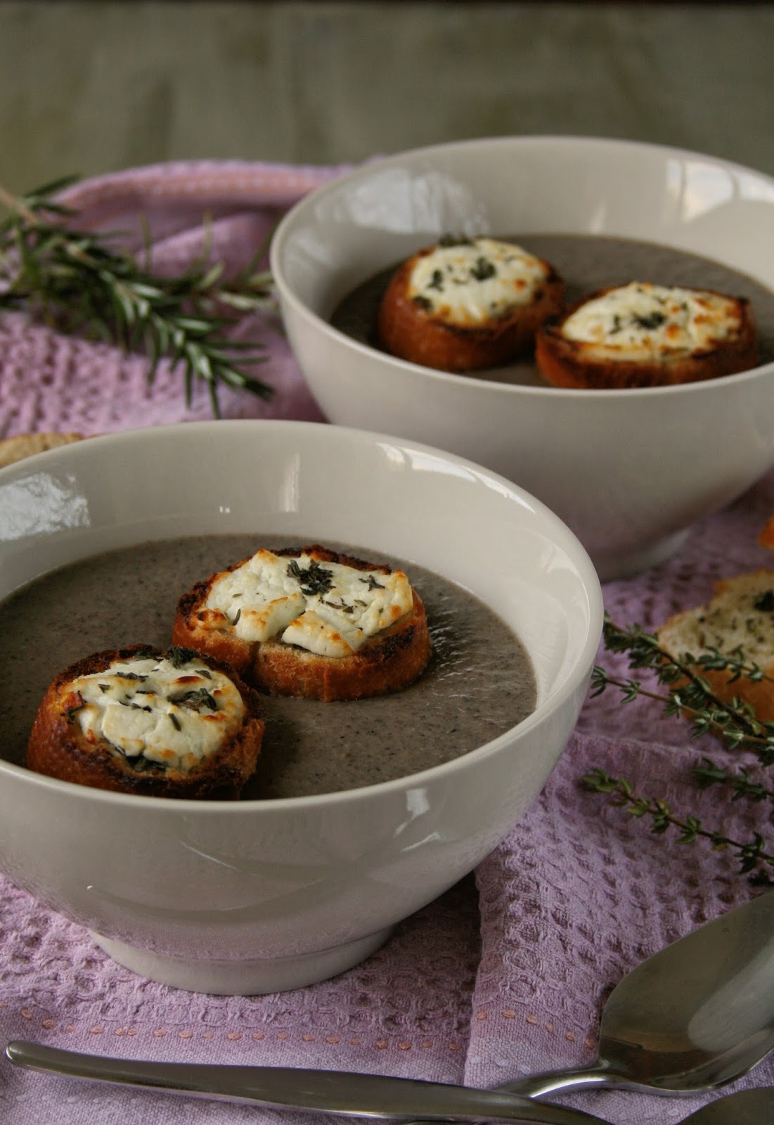 MUSHROOM SOUP WITH CHEVIN AND THYME TOASTS