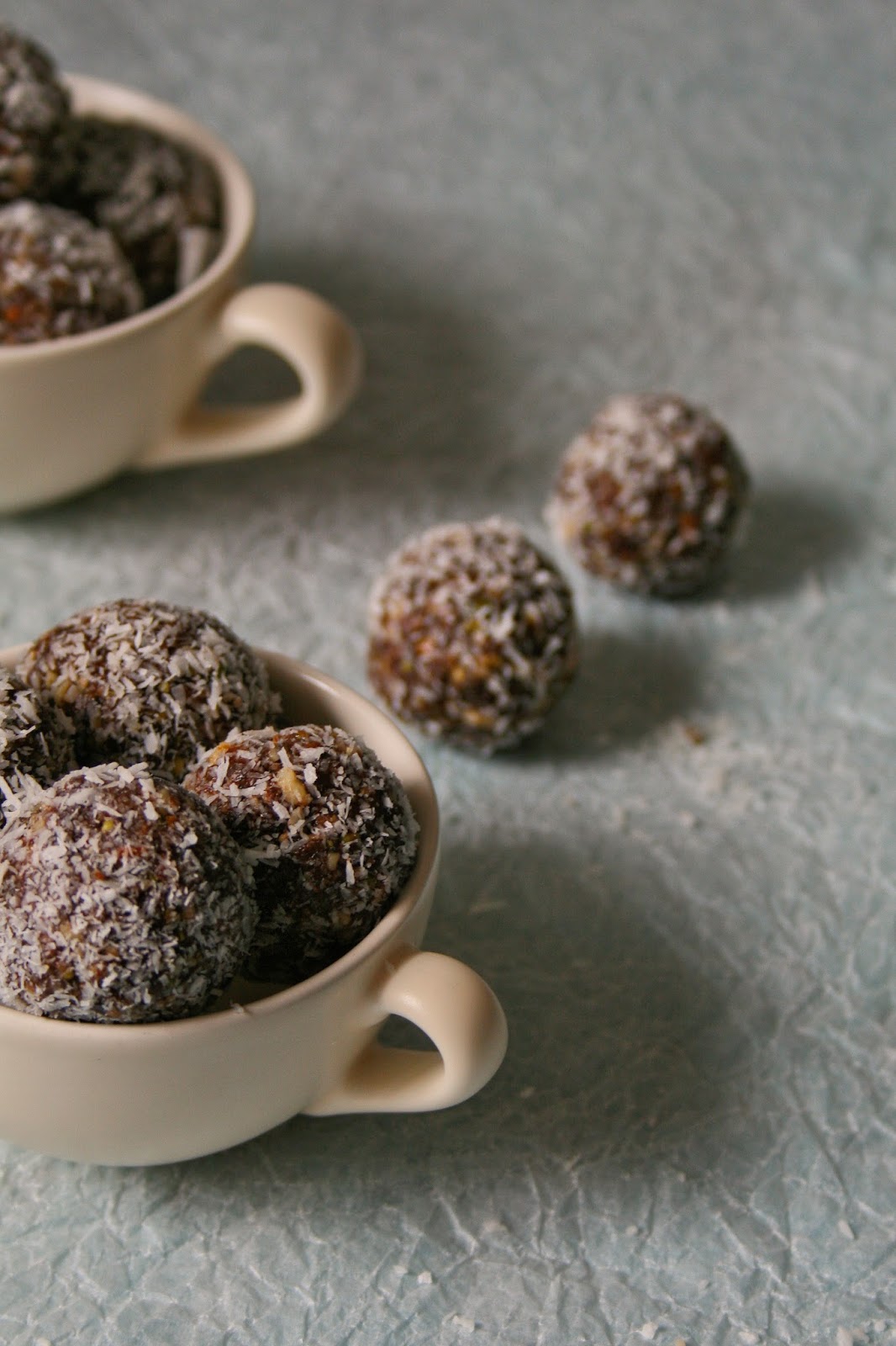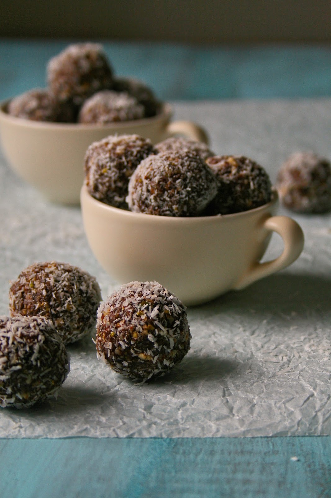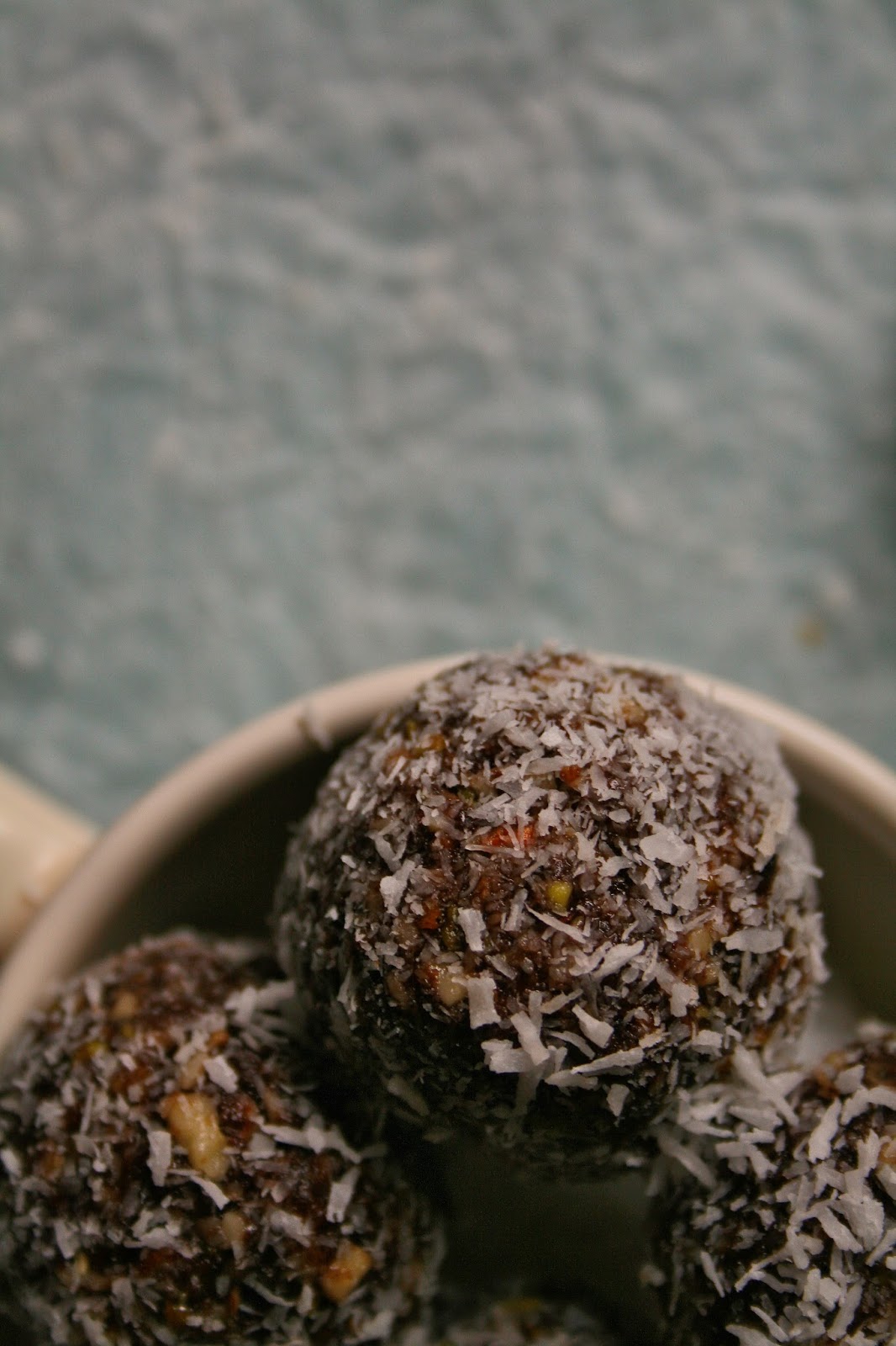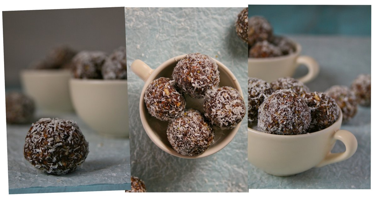 3.) Roll heaped teaspoonfuls of the mixture into balls. Roll each ball in coconut to coat. Store the date balls in an airtight container in the fridge.