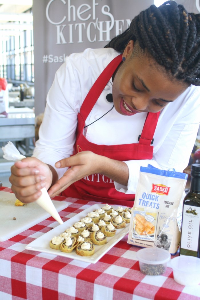 On arrival we were invited to sample delicious canapés made using Sasko products. This was followed by a cooking demonstration, and then a chance to don aprons and get our hands dirty by cooking the recipes ourselves in the S.A. Chef’s Academy kitchen.