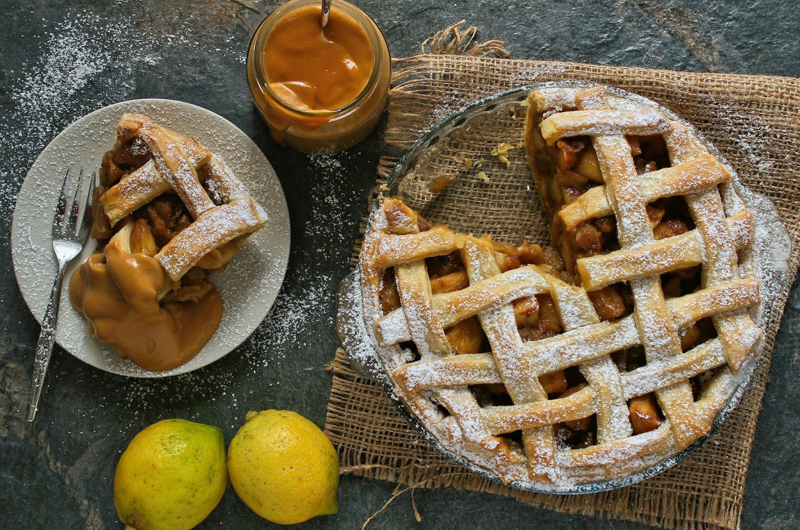 SPICED APPLE PIE WITH CREAMY CARAMEL CUSTARD