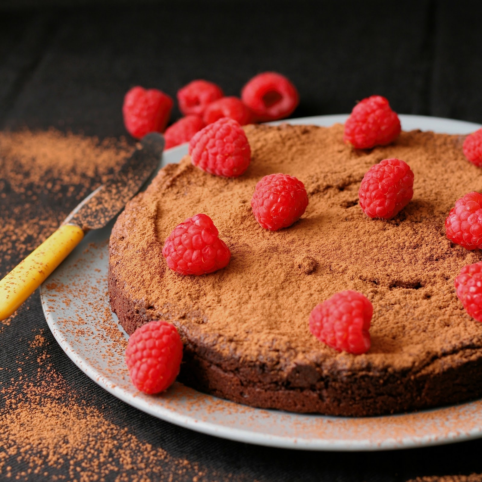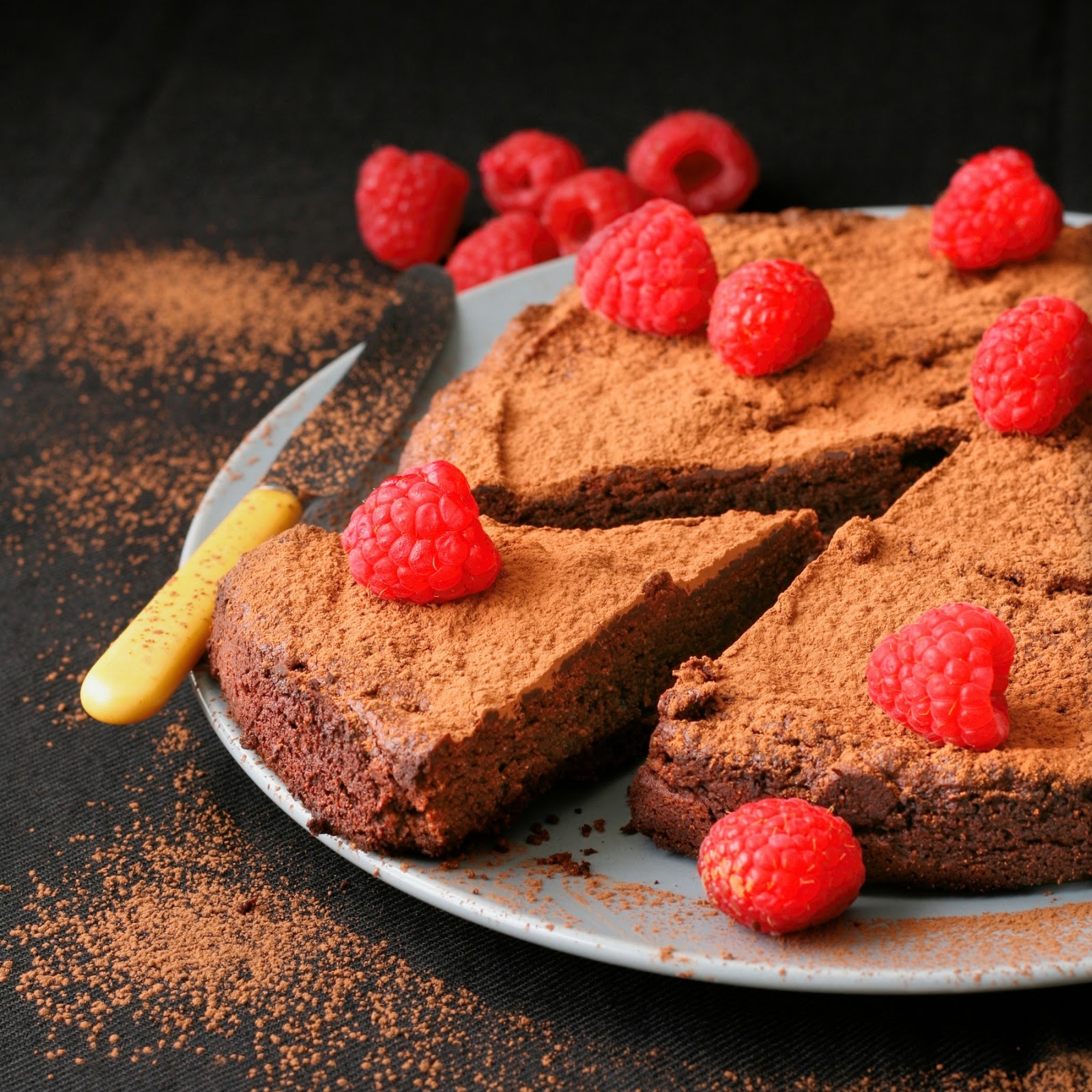 In honour of this milestone I simply had to put together a cake post, right? This is not your typical birthday cake but something between a cake and dessert. Dark, rich and chocolatey, this chocolate cake is delicious with some fresh raspberries and even more heavenly with a scoop of vanilla bean ice cream.