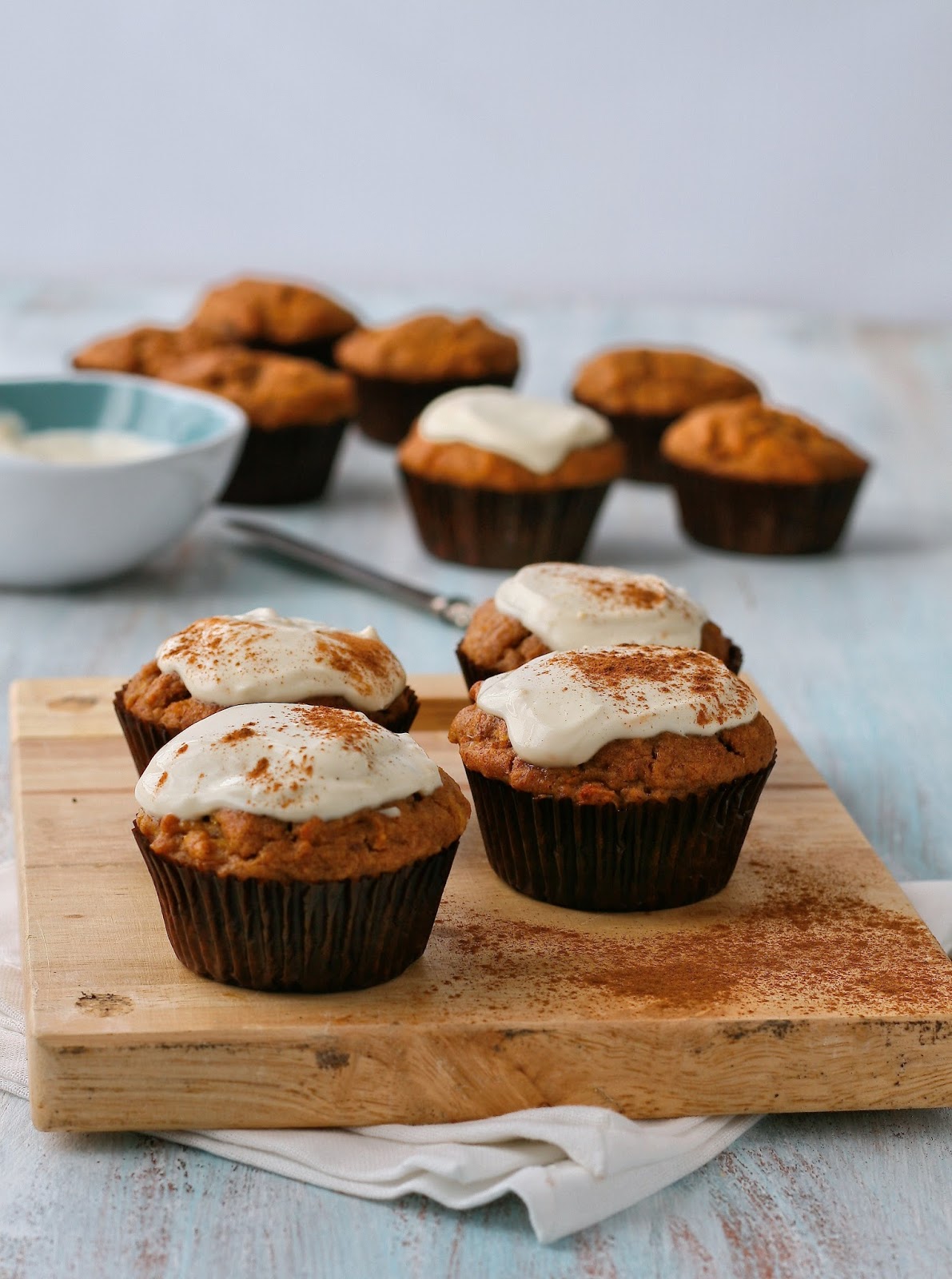DATE, CARROT AND APPLE MUFFINS with CREAM CHEESE TOPPING