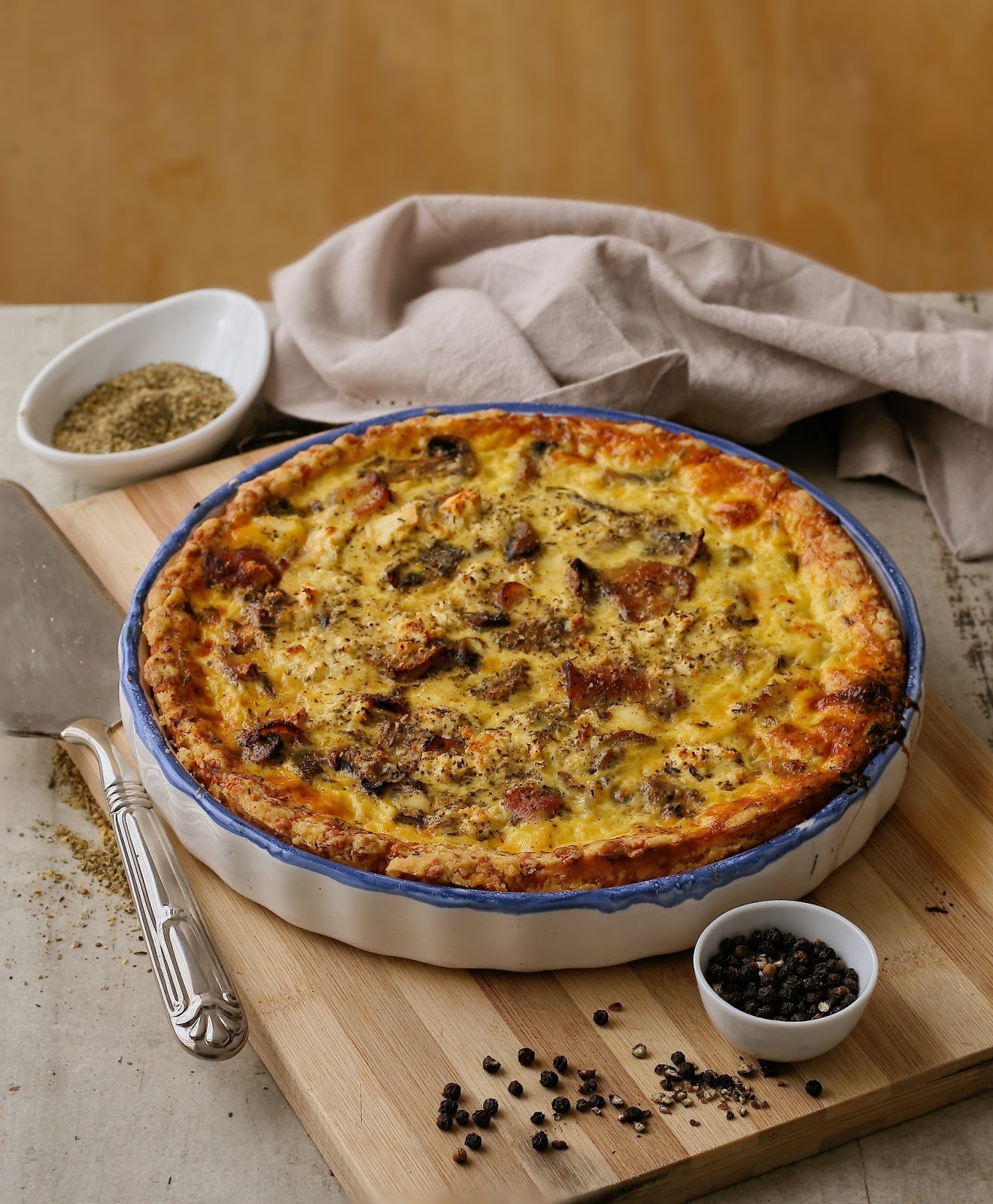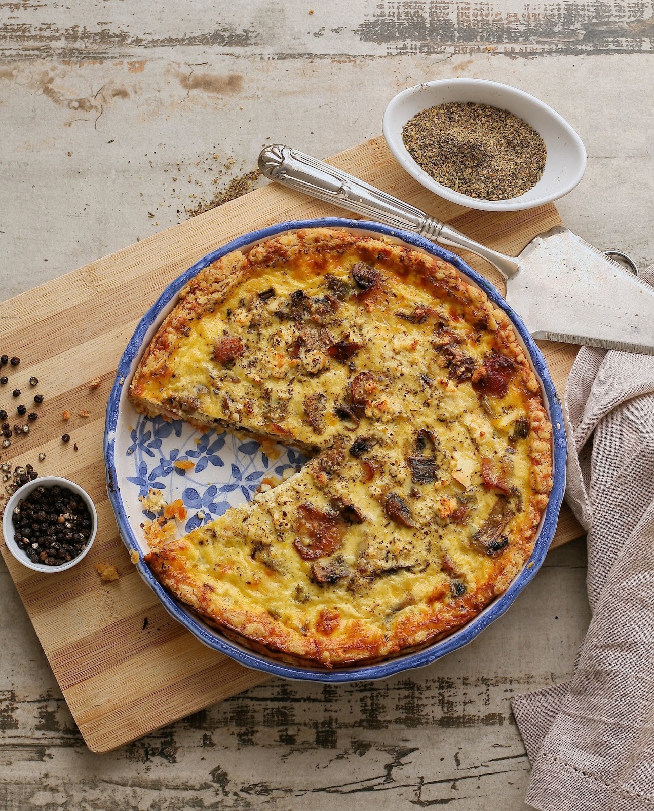 7.) Bake the quiche for 40 minutes or until cooked through. Allow to cool slightly before serving.