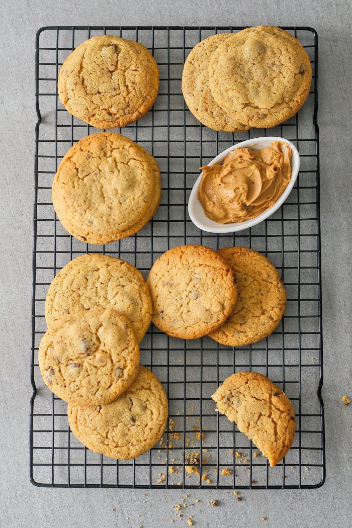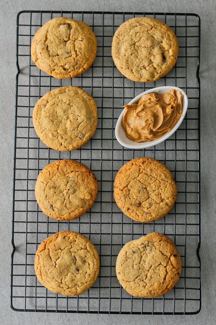The recipe makes 24 large cookies so there’ll be plenty to go around – you could halve the recipe if you don’t need that many. You could also leave the chocolate to make plain peanut cookies if you prefer, although I’m not sure why you would want to leave chocolate out of anything, especially these! You can also choose whether you’d like to use smooth or crunchy peanut butter, I prefer crunchy for the texture. Happy baking!