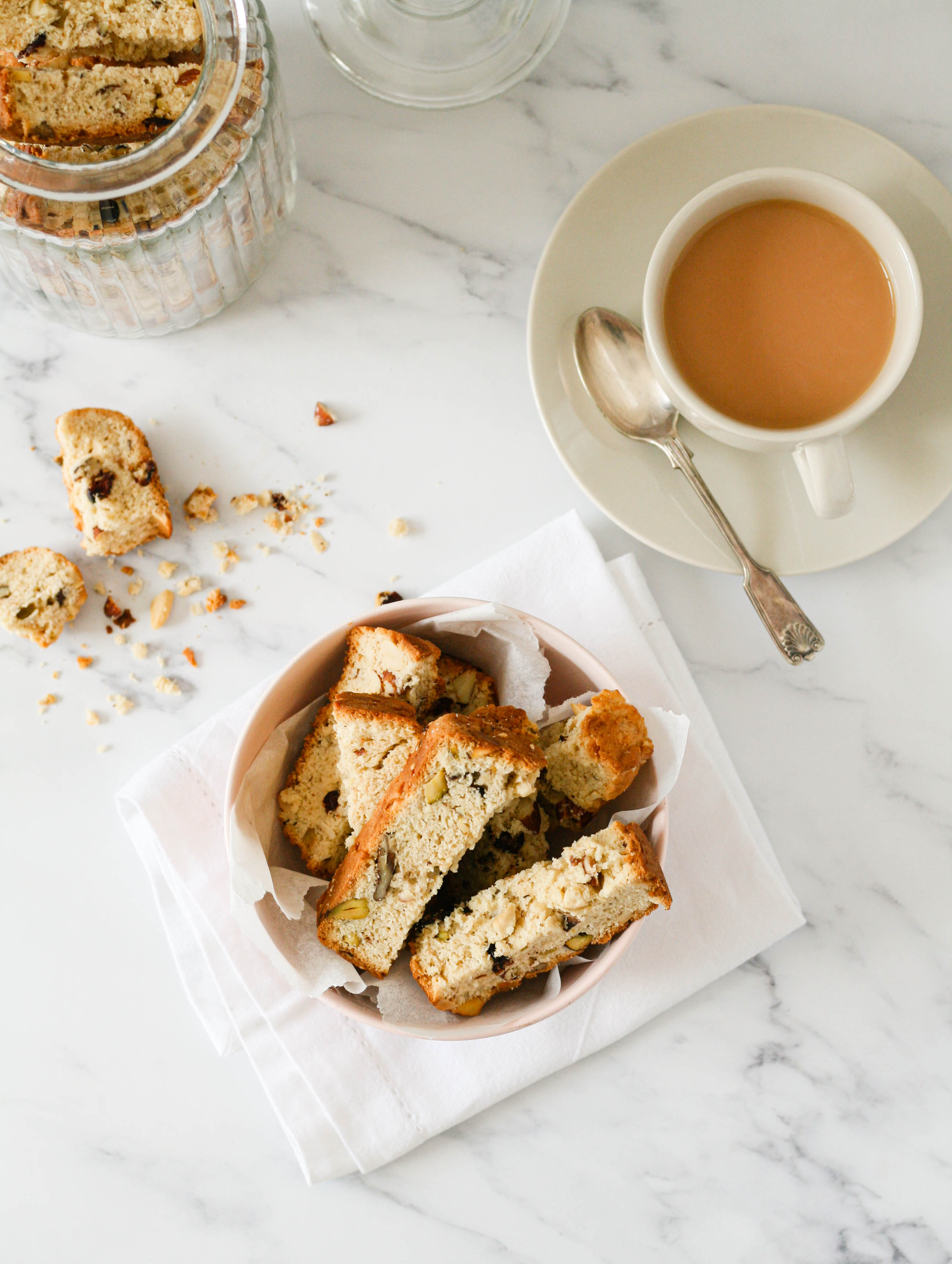 I put this recipe together at the beginning of lock down, (back when we thought we only had a few weeks of this strange new lifestyle ahead of us). Baking has brought a lot of comfort and stress relief over the last six months, and who doesn’t love having a jar stocked with fresh cookies in the pantry. These scrumptious buttermilk rusks are loaded with nuts and cranberries and a totally moreish option for tea time. I hope you enjoy them!