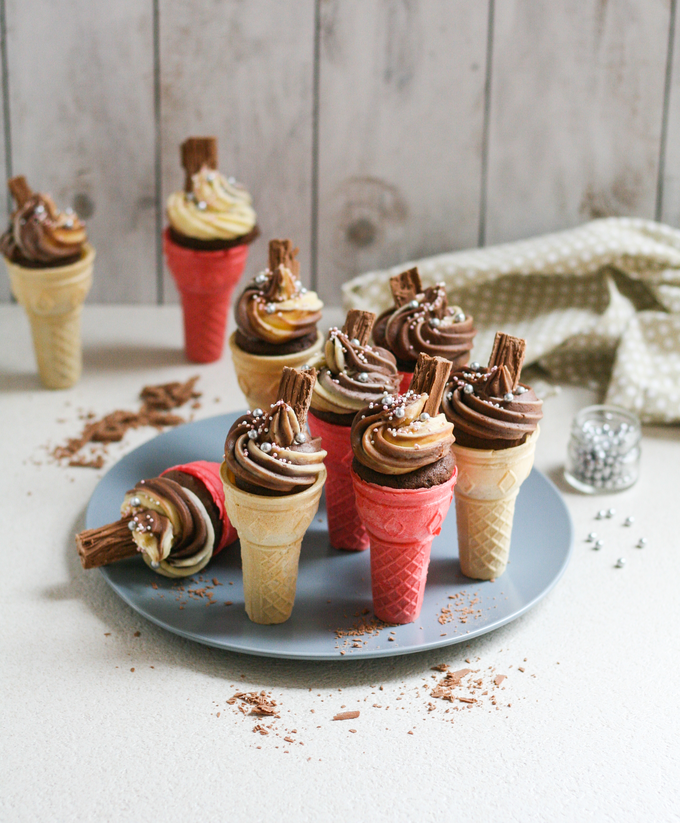 I love the soft serve effect you get when piping the icing on top, but you can just as easily spread the icing on the cones instead, if you prefer. Just don’t forget those all important sprinkles. Have fun!