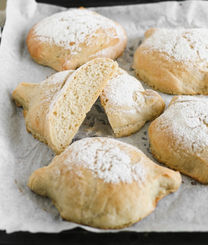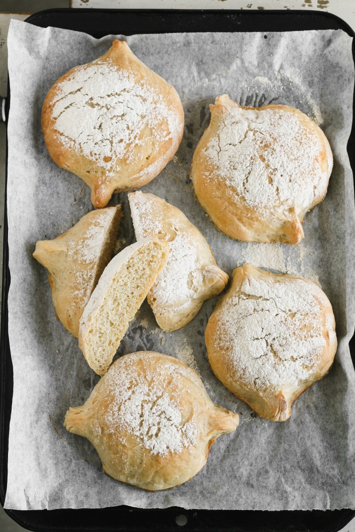 4.) Preheat the oven to 180ºC. Brush the rolls with some milk and sprinkle with flour. Bake for 25-30 minutes until golden and cooked through.