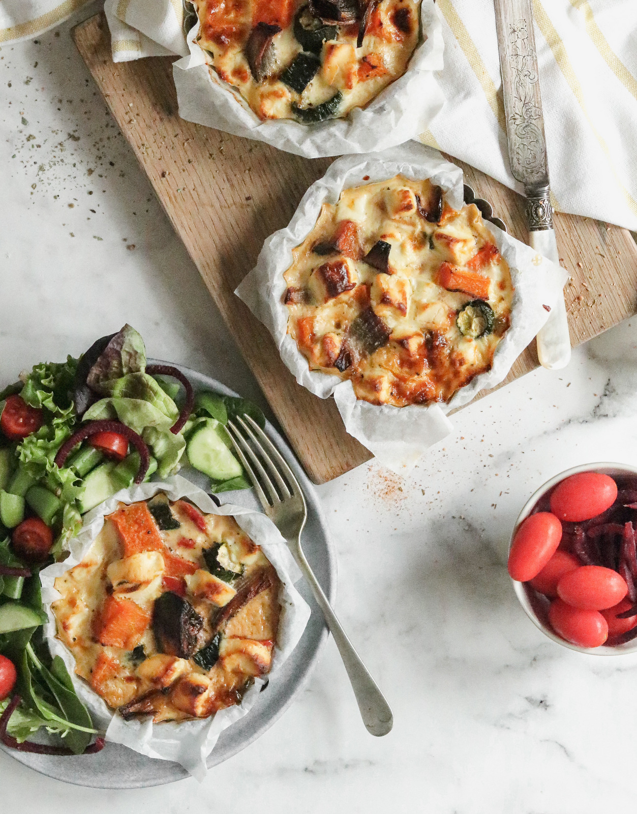 I usually make at least one large tray of mixed roasted vegetables every week to be enjoyed over a couple of suppers. Leftovers are even better, I love tossing them into cooked quinoa, couscous or an omelette for a speedy and satisfying week day lunch. These mini quiches are another option!