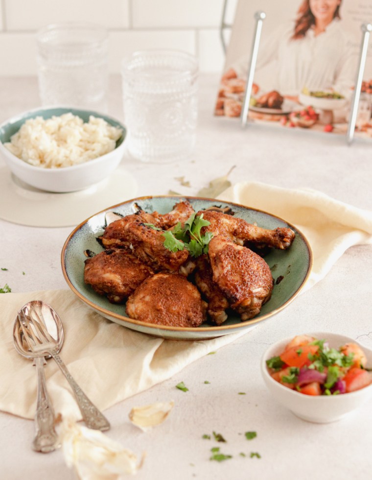 Zorah has kindly given me permission to share a recipe from her book, and I’d love you to try her recipe for this Eastern-influence tandoori chicken. This dish is packed with flavour thanks to all the spices that have been included, but is easy enough to prepare for a weeknight meal. I made the sauce mixture ahead of time and let my chicken pieces marinade overnight which gave them even more flavour, yum! I served the chicken with rice, a tomato salad and some plain yoghurt. It was truly delicious and a hit at dinner time!