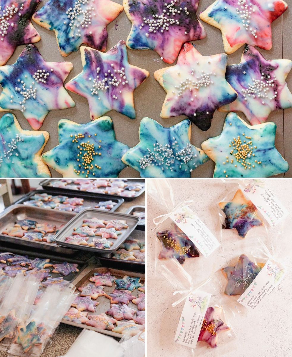 Last year I was asked to make two hundred individually wrapped star cookies for a school fundraiser and I only realised recently that I haven’t yet shared the recipe! It’s a very easy sugar cookie recipe, but the really fun part is decorating the baked cookies with marbled icing and sprinkles to make cute and unique tea time treats that are sure to delight!