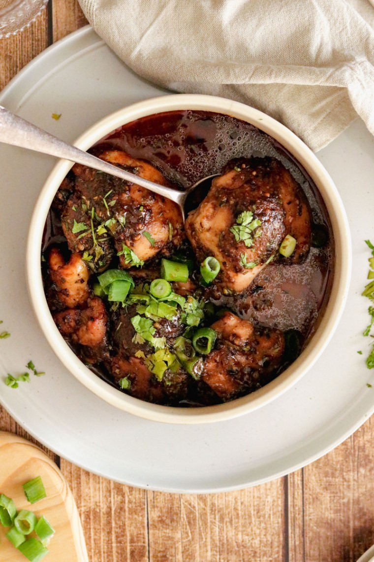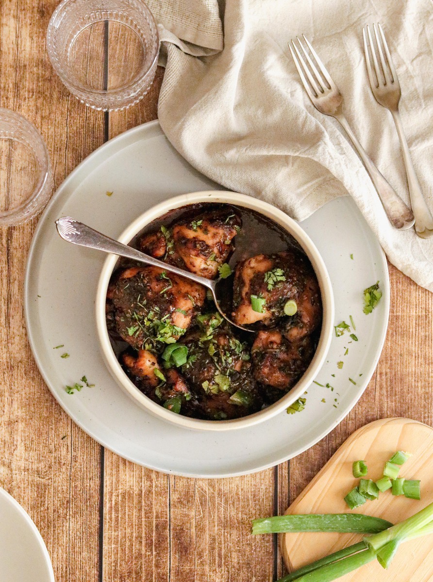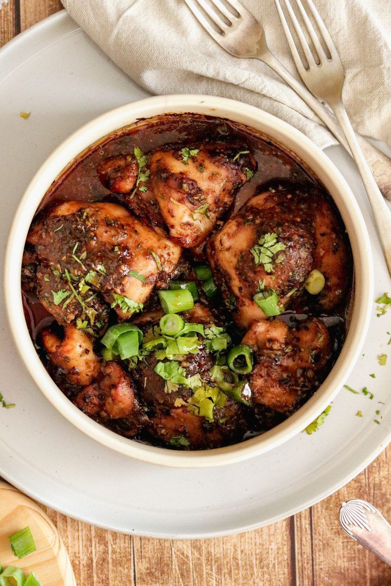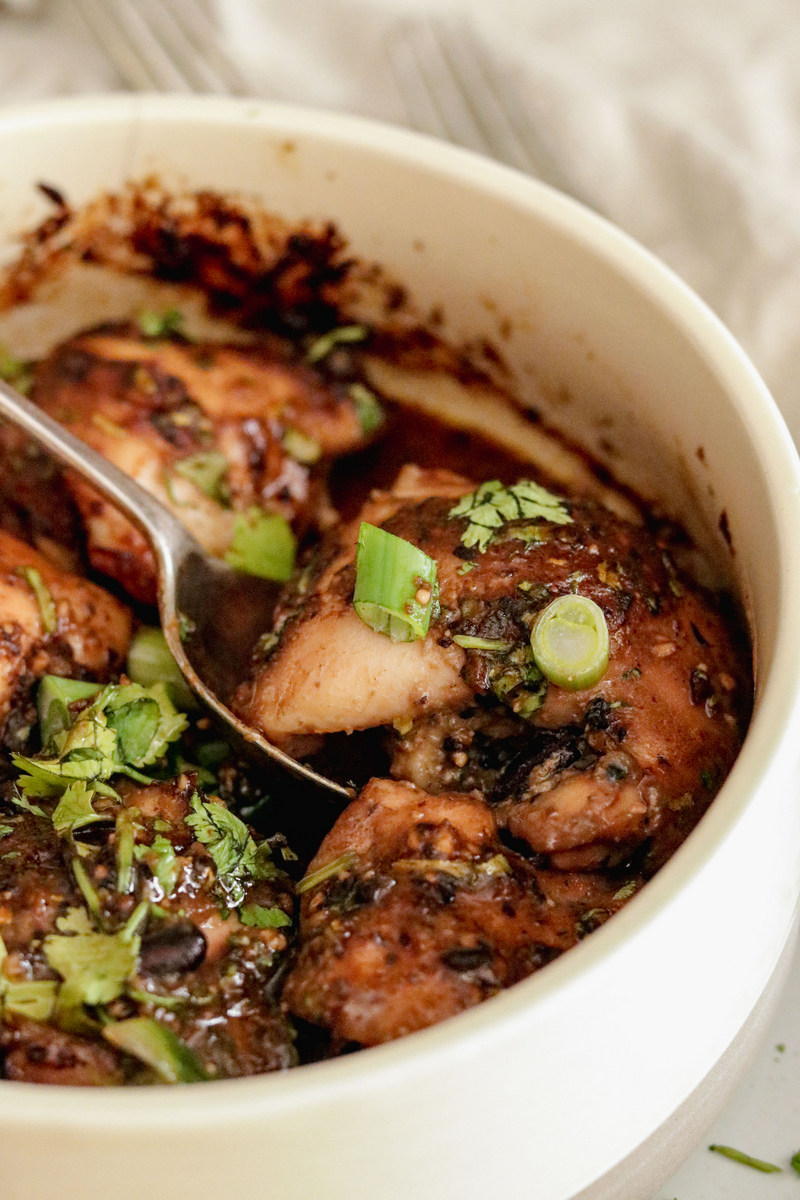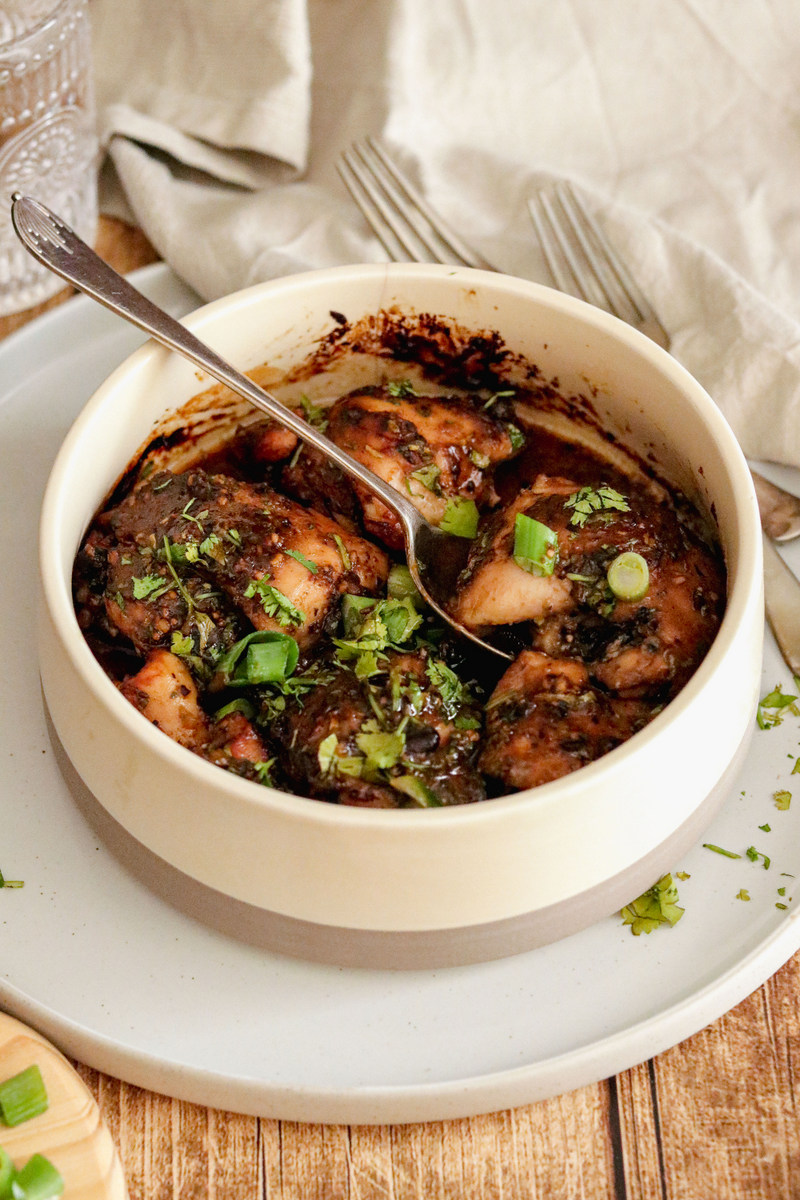 3.) Preheat the oven to 200ºC. Transfer the chicken and marinade to an oven dish and bake for 30-35 minutes or until the chicken is cooked through. Garnish with extra coriander and spring onion and serve with rice or your choice of side dish.