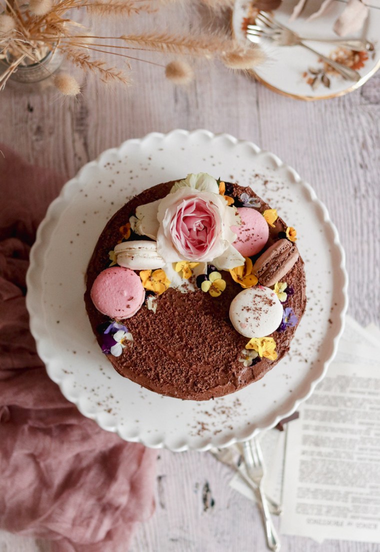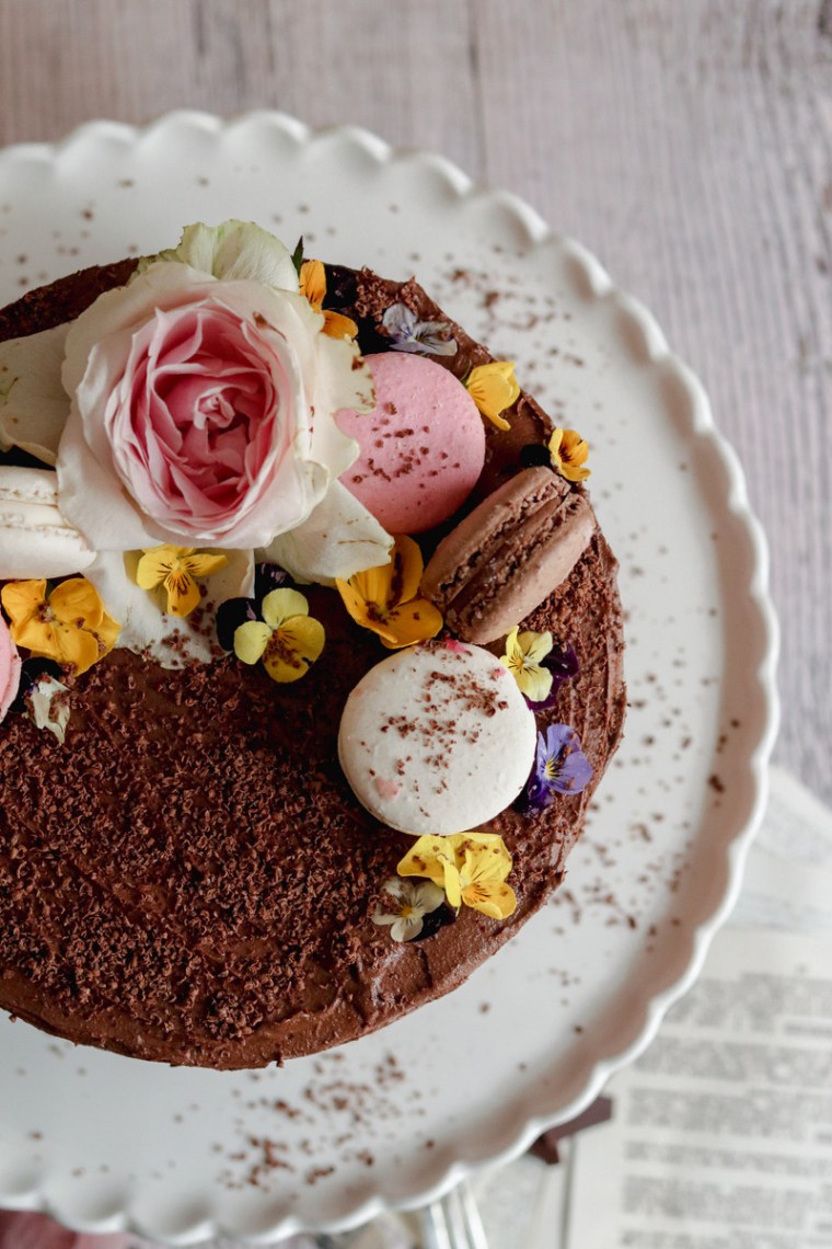 - decorations of choice (e.g. macarons / edible flowers / grated chocolate / roses, etc.)