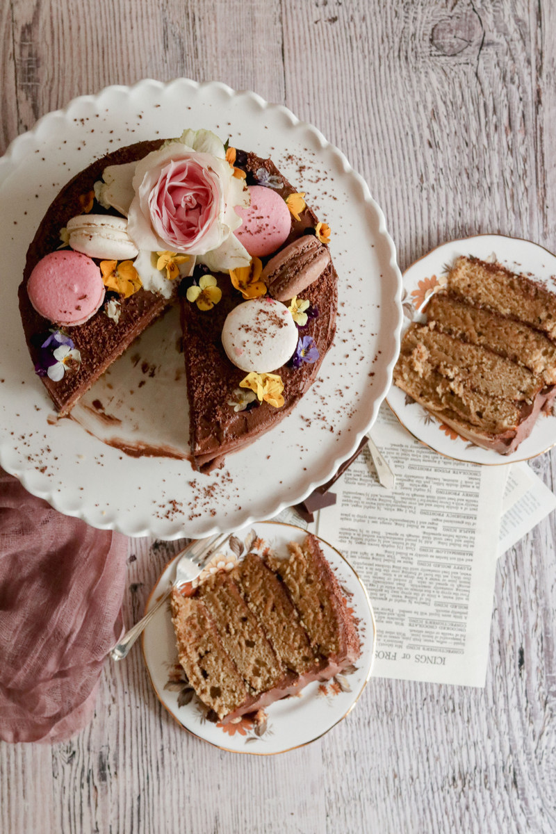 To celebrate I baked myself a little (ok, not so little) layer cake flavoured with coffee and topped with dark chocolate icing. There are four delicious layers so this one is great for a crowd, if you wanted a smaller cake you could easily halve the recipe.