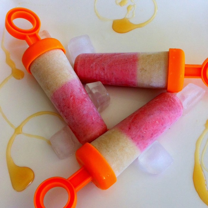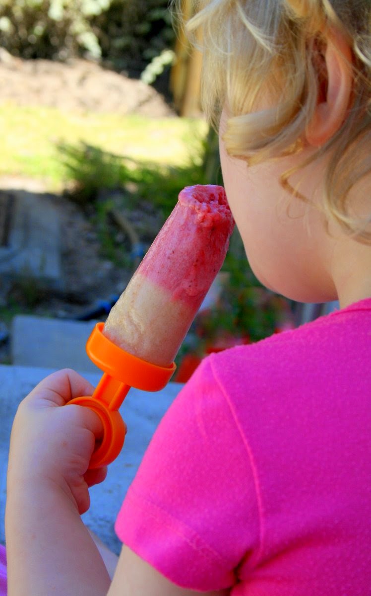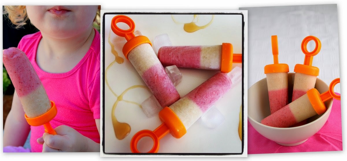 1.) Place the strawberries, 100ml of the yoghurt, 1/2 tsp vanilla and 1 tsp honey in a food processor (or use a stick blender) and whizz until smooth and combined. Taste and add more honey if you prefer a sweeter lolly.