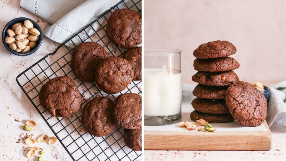 Double chocolate pistachio cookies